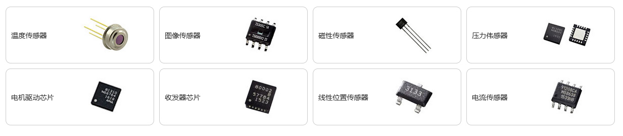 | 电流传感器芯片 | 电感式位置传感器芯片播 | 闭锁/开关芯片 | 磁位置传感器芯片 | 速度传感器芯片 | 光学传感器芯片 |