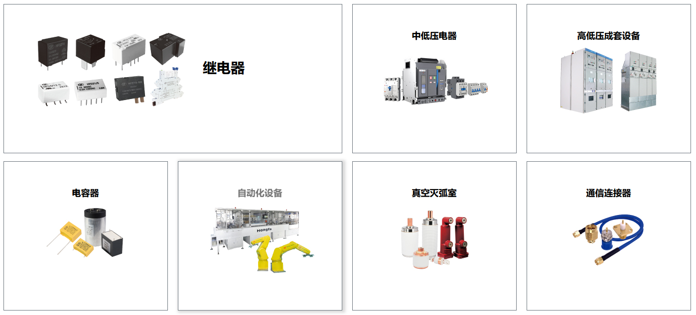 宏发产品布局继电器、中低压电器、高低压成套设备、连接器、电容器、精密零件及自动化设备等多个产业板块,拥有30余家子公司,建立厦漳、东部、西部三大研发生产基地,成功打造了品类齐全、配套完整的全产业链优势。