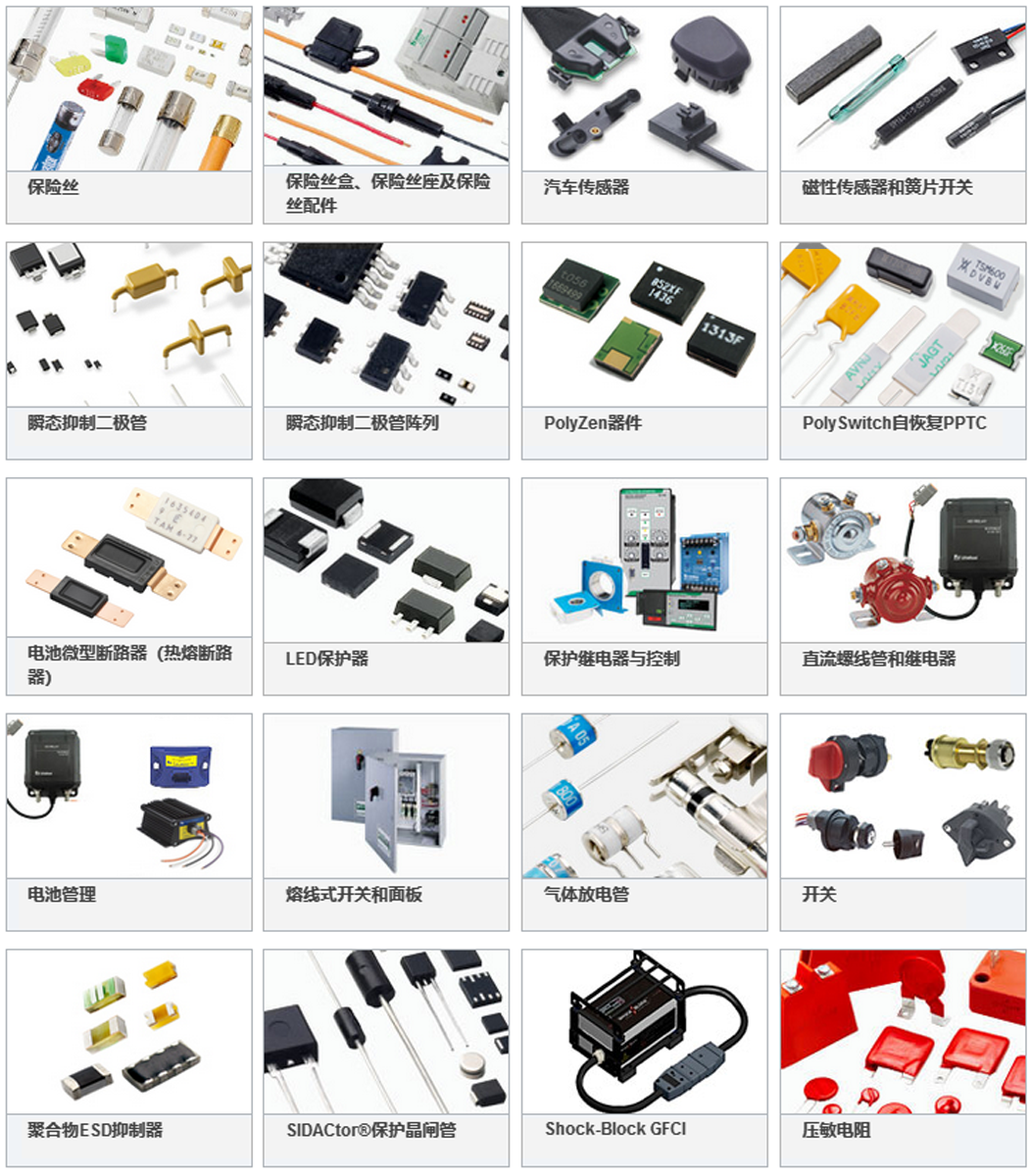 电源半导体 保护集成电路 保护继电器与控制 PolySwitch自恢复PPTC保险丝 半导体 Shock-Block®接地故障断路器 浪涌保护模块和器件 固态继电器 开关 温度传感器 压敏电阻 |